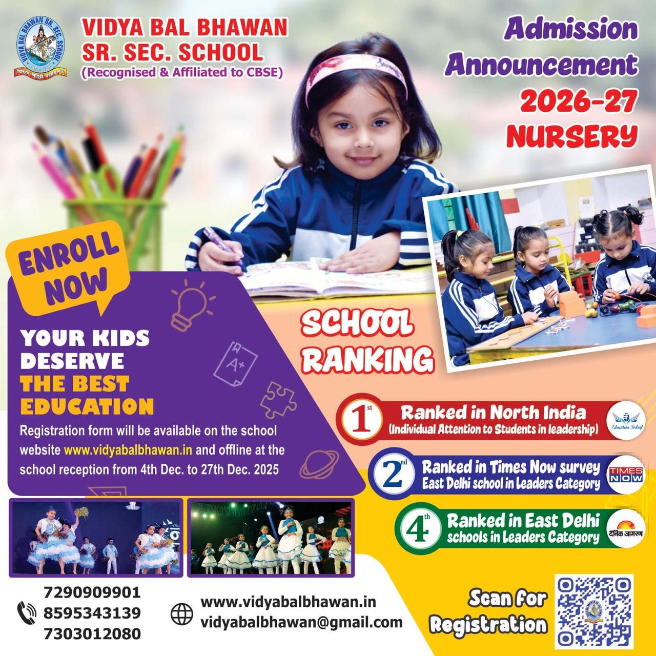 Learning is a life-long process and at Vidya Bal Bhawan Public School, they help children prepare for their life not just in school but beyond it. Not just academics by skill training and extracurricular are given importance here.